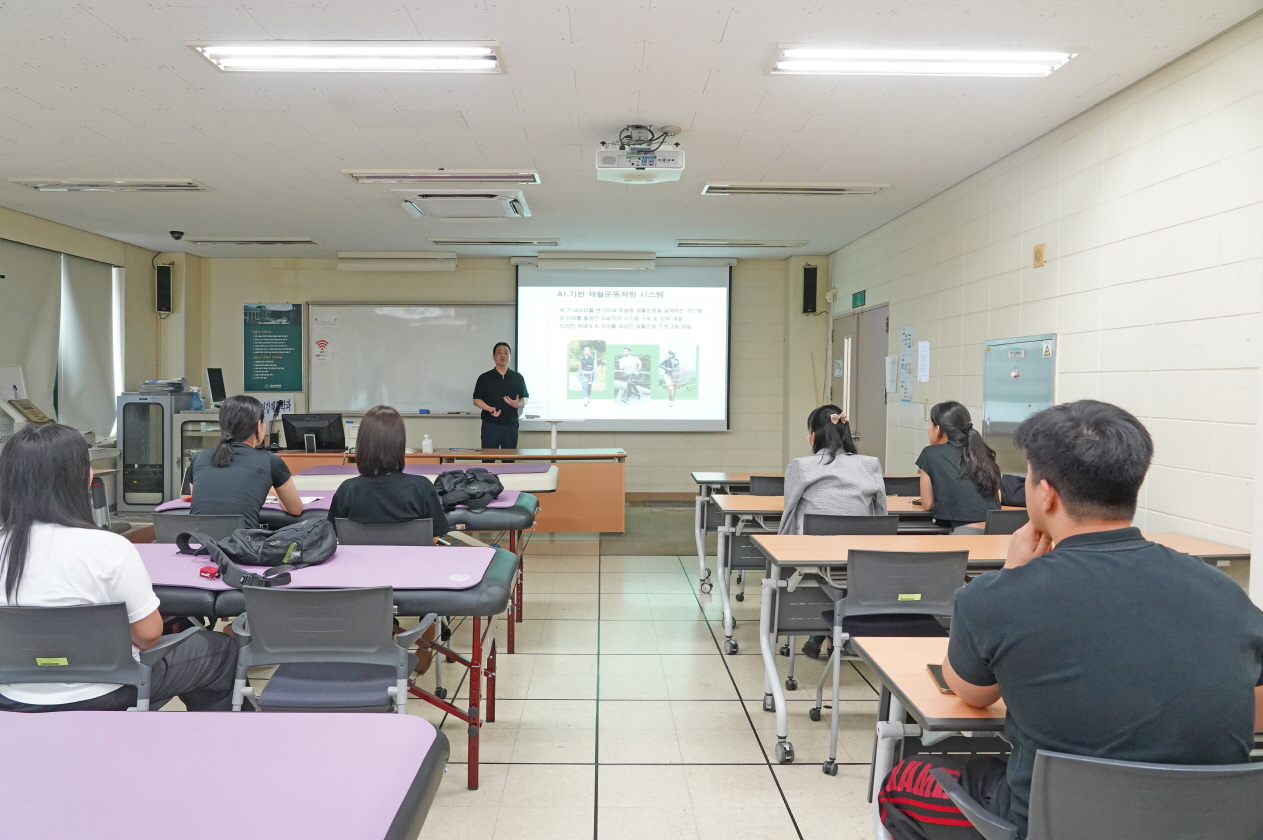 한편, 우리 대학 스포츠재활학부는 재활운동, 건강운동관리, 스포츠의학, 트레이닝 등 이론과 실무 중심의 교과과정을 운영하고 있다. 특히 재활 운동 전문가로서의 현장 적응력과 실무 능력 강화를 위해 다양한 임상실습, 캡스톤디자인, 산학 연계 특강 등을 통해 진로·취업 역량을 체계적으로 개발하고 있다.